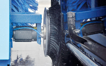 進(jìn)口意大利塑玻絲輪刷,根據(jù)光電開(kāi)關(guān)感應(yīng)判斷車(chē)身位置,輪刷啟動(dòng)至輪轂位置,開(kāi)始清洗,正反旋轉(zhuǎn)刷洗輪轂,電腦洗車(chē)機(jī)全程電腦全自動(dòng)控制輪刷伸縮。